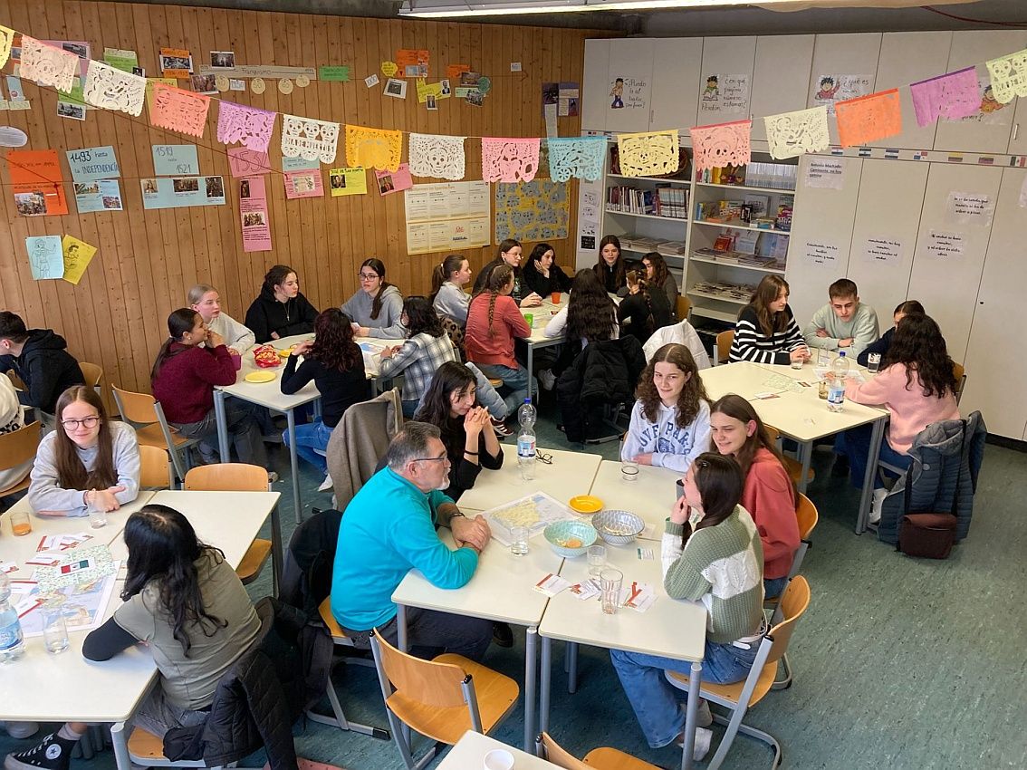 Weiterlesen...Am 31.03.2025 fand die traditionelle "Tertulia" der Spanischfachschaft am Gymnasium statt. Dabei kamen rund 25 Spanischschüler*innen aus den Klassen 8 bis 10 mit neun Muttersprachler*innen aus der spanischsprachigen Welt in einer Art Gesprächskreis zusammen, um ihre Spanischkenntnisse anzuwenden...